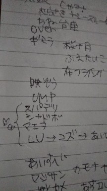暗闇で、もしくはステージから目を離さずに、手元を見ないで書く技術はそこそこあるかもしれない(「♡♡」のとこ撮ってみた…笑)和ゾーンは場内暗かったから判読ぎりぎりの字だな~そのあとは場内明るくなったのでだいぶ読める字(笑)でもペンラ持つとやっぱ難しかったな。。手がもう1本欲しいっていうか。。ペンラ持つ派に転じるか、持たない派に戻るか、それも次までに考えときます(笑)