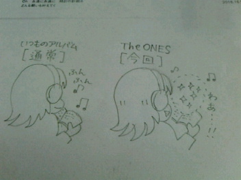 そんなわけで、私がこのアルバムをイージーリスニング的(聴きやすい)と思ったのは、おしゃれイコライザ、ファルセット多め、という2点からのことだったのだなと自分で謎が解けました。もうすでにどこかでどなたかがおっしゃっている内容だったらすみません。ほとんど何も見ずに自分の考えだけ書いているもので<(_ _)>各曲の感想もそんな感じになる予定です。OMGとどっちが良いとか悪いとかじゃないんですよ。私の個人的好みは正直OMGかもしれないと自分では思っていますが、今作The ONESも4年半後の大人な感じですごくいいと思う(^w^)そしてラスト2曲でひっくり返されるとこも大好き!おかえり!!(≧▽≦)って思って何回聴いても微笑ましいし泣きそうにもなります(>_<)