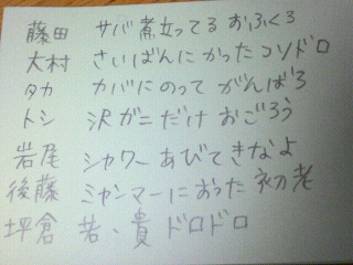 急いで書いたので字が汚いのはご容赦ください(まあゆっくり書いてもきれいな字ではないですけどね)しかしいろんなふうにモジれるものですね(笑)とひとしきり感動。。個人的には岩尾のんちゃんのが「本人達にVコンで歌ってほしい…v」と思いました(笑)