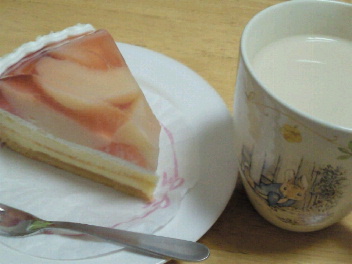 桃のタルトと、洋酒をちょろっと入れたミルクティー。めちゃうまv