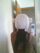 かぶってみました(笑)前はお見せできませんがもちろん前髪は全部インです。うーん我ながら素敵。でも自分でかぶるというよりもこれは誰かにかぶせたいという思いがふつふつと沸きますね(笑)