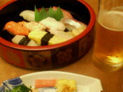 路地にちょっと入ったところのお寿司屋さんにたどり着く。もうけっこう遅い時間(22時近く)だったのでお客はほとんどおらず、すぐ座ってすぐ乾杯(笑)