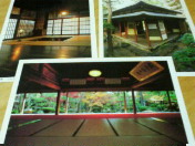 ポストカード上段右は「三楽亭」という小亭。上から見たら正三角形で、当然、中の部屋も正三角形で、畳は三角形やらひし形やらでちょうど全体で正三角形になるように敷きつめられています。すごい不思議(笑)見取り図みたいなの見たけど、数学の図形の問題に出てきそうな感じでした。障子の桟も幾何学模様っぽかったりで隅々まで面白かったです。
