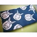 すでに注文を終えたお客さんのところに、店員さんが「お品物こちらでよろしいですか?」と手にしてきたそのお品をふと見ると、それはうさぎ柄の手ぬぐいでした。ピンク地に白抜きでうさぎの柄。それを目にした瞬間、…かーわーいーいーー(≧▽≦)←私の中で何かがはじけました(笑)お品を陳列してあるショーケースの中を見ると、4色の手ぬぐいが並んでいました。ピンク・紺・えび茶・グレー、柄はすべて同じ白抜きのうさぎ。わーわーどれにしようどれにしよう〜〜←買う気スイッチMAX(笑)どの色あいもかわいくて迷ったけど、ふと思えばこれは三宅先生ゆかりの地巡りの一環なので、ここはやはり紺か!と思い、紺地のを購入。うきゃ〜かーわーいーいーーヽ(≧▽≦)ノ 写真のブツです。手ぬぐい735円、あとどら焼きを買いました。どら焼きは1個178円。