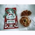 28日(月):荒神ツアーもいよいよ最終日。朝食、前日に買ったウチキパンのパンを食す。写真手前・紫いもパン(140円)、写真奥・クリームパン(120円)。クリームパンはちょっとしぼみ気味になってしまいましたな(^w^;)やはり焼きたてがいちばん美味いと思われる。でも美味しかったですよ、クリームはさすがに伝統が感じられるお味と雰囲気。紫いもパンもしっとり食べやすくて美味しかった。写真左はパンを入れてくれる袋。レトロでかわいいなぁ。