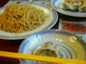 写真はVシュランで紹介されてたカキソース和えそば。これ美味しかった〜!食べる前はもっとクセがある感じの味なのかなと勝手に思ってたけど、全然そんなことなくて、あっさり味でばくばく食べれました。具は入ってなくて緑の刻みネギがぱらぱらっとかかってるだけで、このシンプルさがまたいいんですよね。カキソースの味だけ味わえ!っていうこのシンプルさ、潔さが素敵です。美味しかったっす(≧▽≦)あと餃子もいただきました。写真右上にさも食べる前のような皿が写ってますが、すでに数個は胃の中に入ってます(笑)うーんアングルマジック。餃子も美味しかったです♪